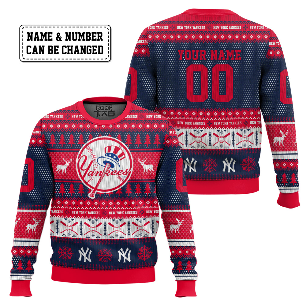 Hooktab New York Yankees – Custom Name And Number Ugly Sweater