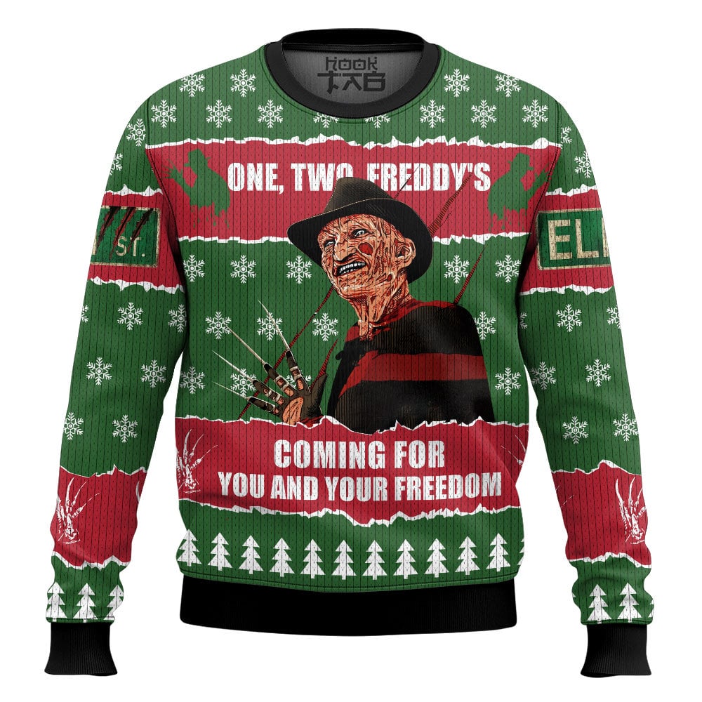 Hooktab One, Two, Freddy’s Coming For You And Your Freedom Ugly Christmas Sweater