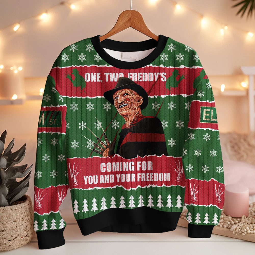 One, Two, Freddy’s Coming for You and Your Freedom Ugly Sweater