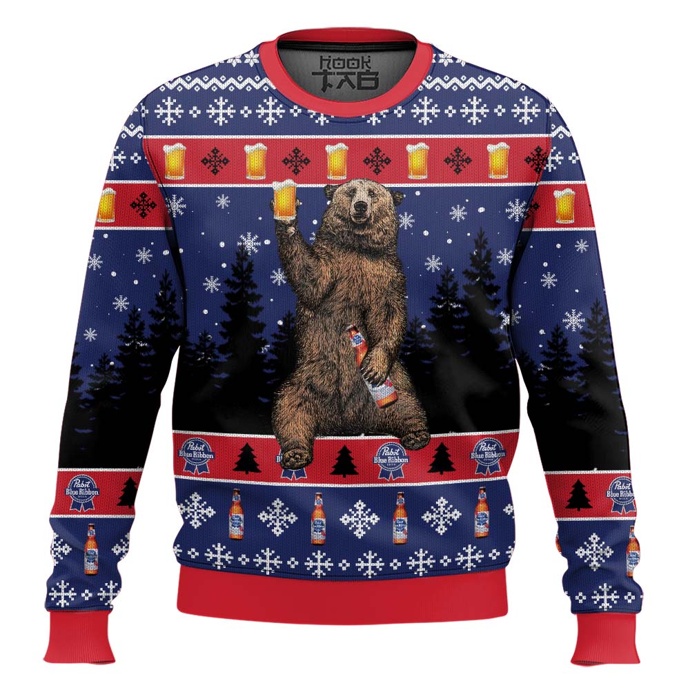 Hooktab Pabst Blue Ribbon Bear Ugly Christmas Sweater