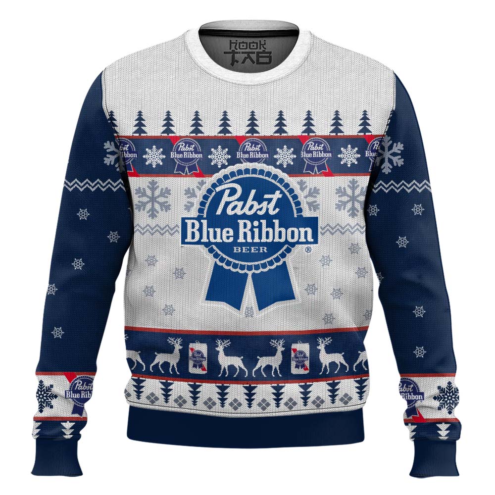 Hooktab Pabst Blue Ribbon Beer Ugly Christmas Sweater