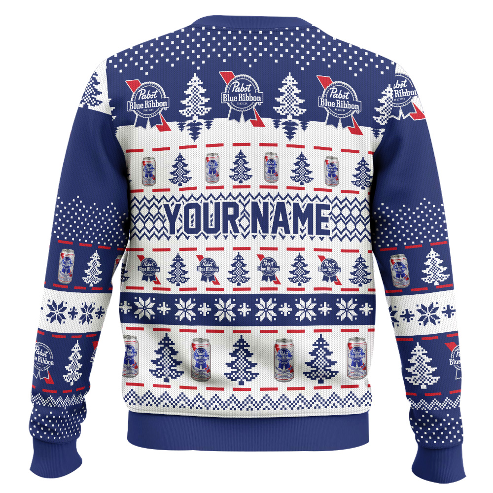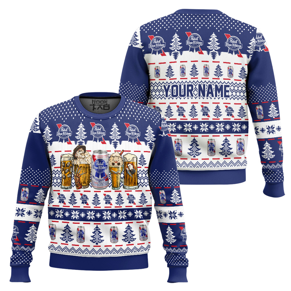 Hooktab Pabst Blue Ribbon Horror Drink – Custom Name Ugly Christmas Sweater