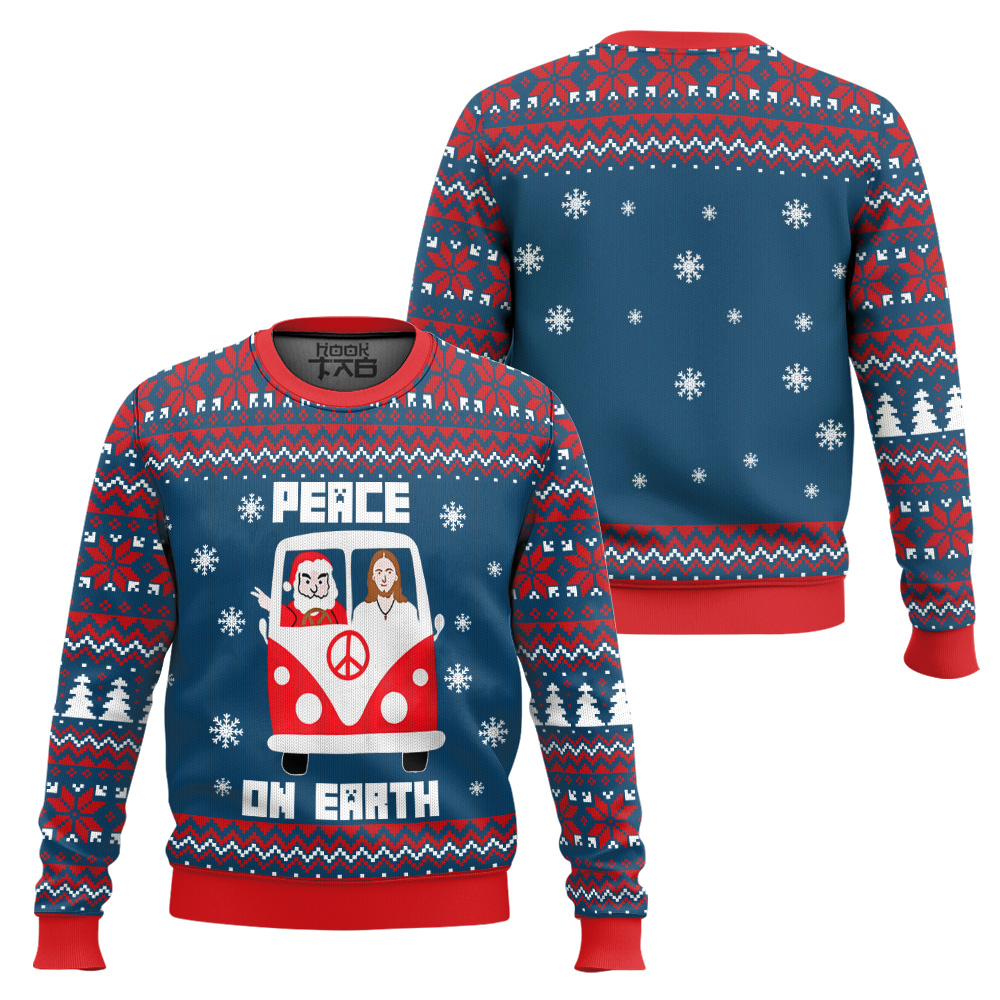 Custom Ugly Peace On Earth Christmas Sweater Jumper