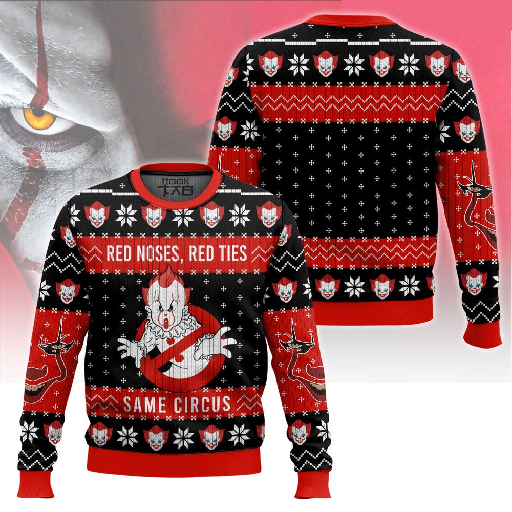 Hooktab Pennywise Red Noses Red Ties It Ugly Christmas Sweater