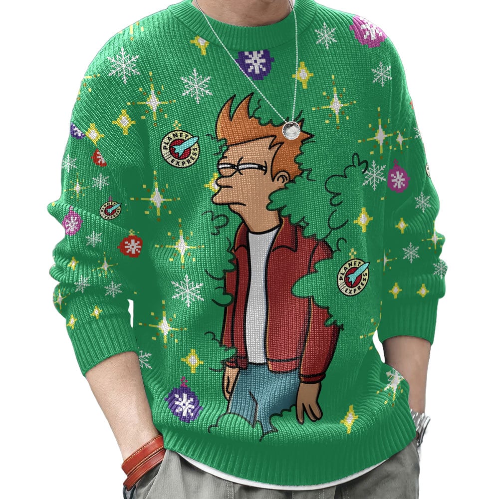 Hooktab Philip J. Fry Emerging From The Bush Futurama Ugly Christmas Sweater