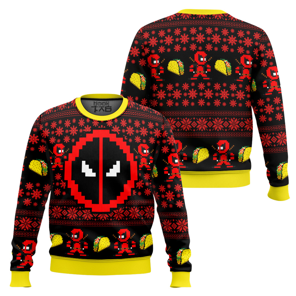 Hooktab Pixel Deadpool Ugly Christmas Sweater