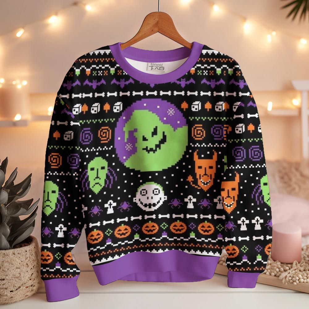 Hooktab Pixel Oogie Boogie Ugly Christmas Sweater