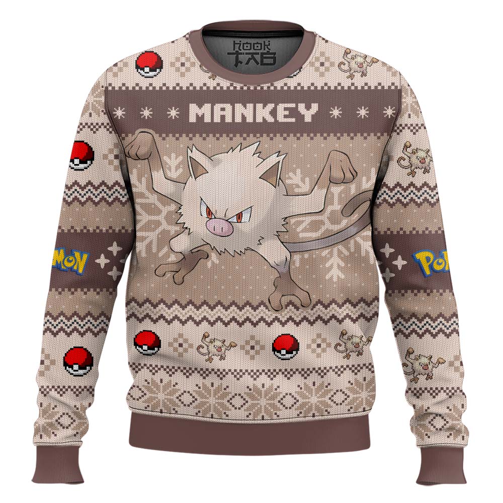 Hooktab Pokemon Gen 1 Mankey Ugly Christmas Sweater