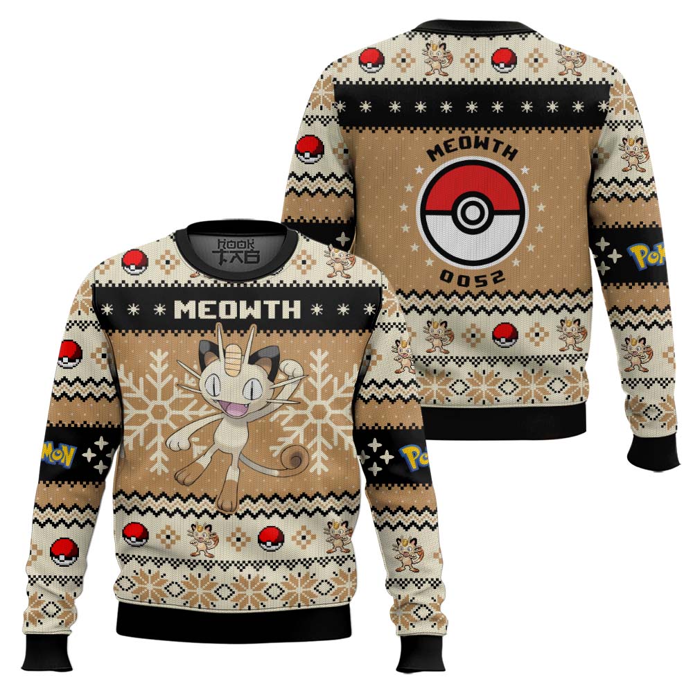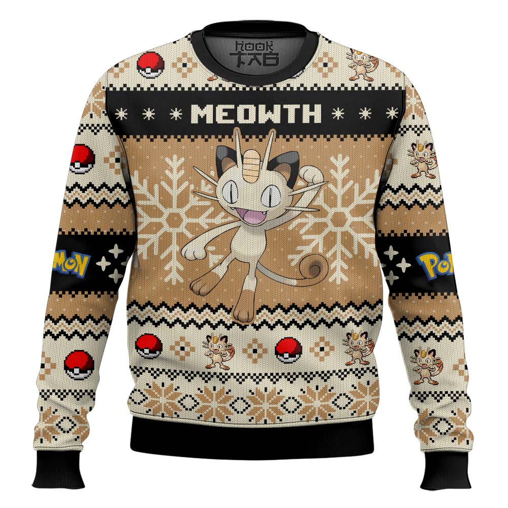 Hooktab Pokemon Gen 1 Meowth Ugly Christmas Sweater
