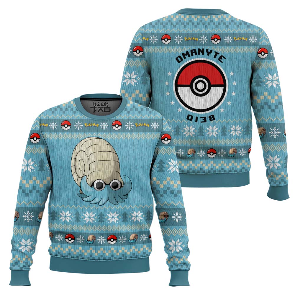 Hooktab Pokemon Gen 1 Omanyte Ugly Christmas Sweater