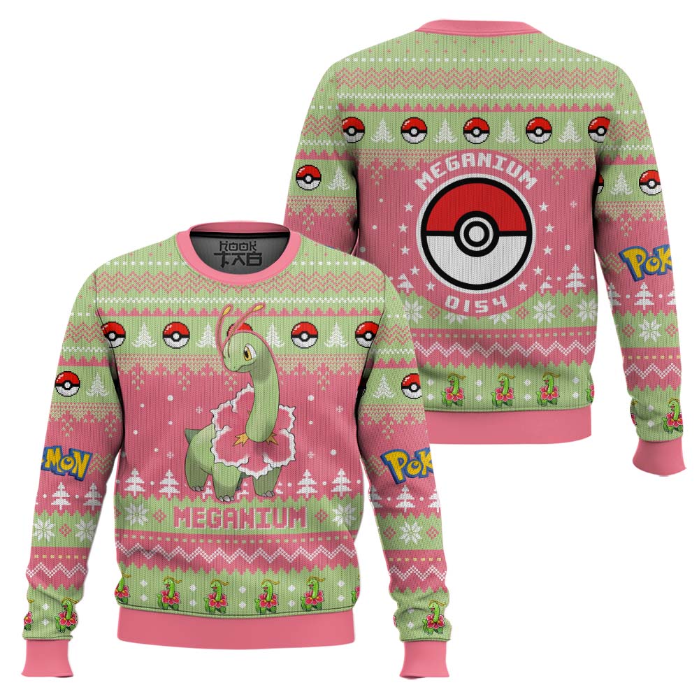 Hooktab Pokemon Gen 2 Meganium Ugly Christmas Sweater