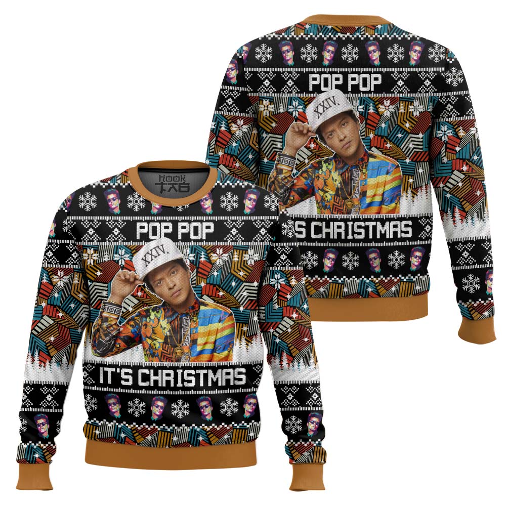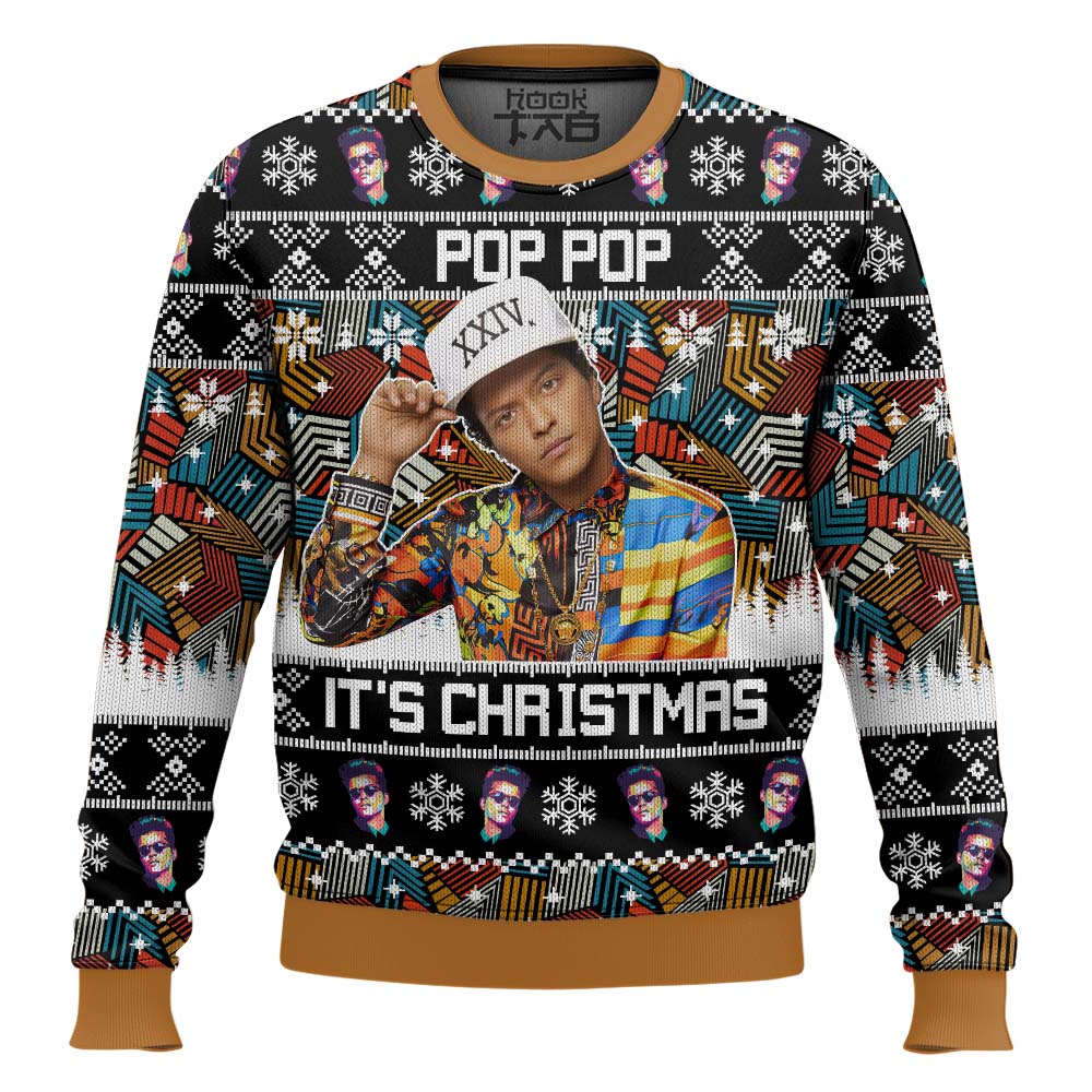 Hooktab Pop Pop It’s Christmas Bruno Mars Ugly Christmas Sweater