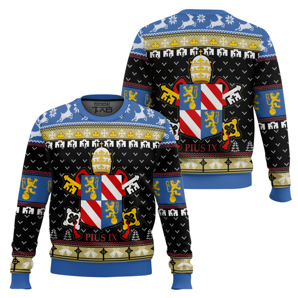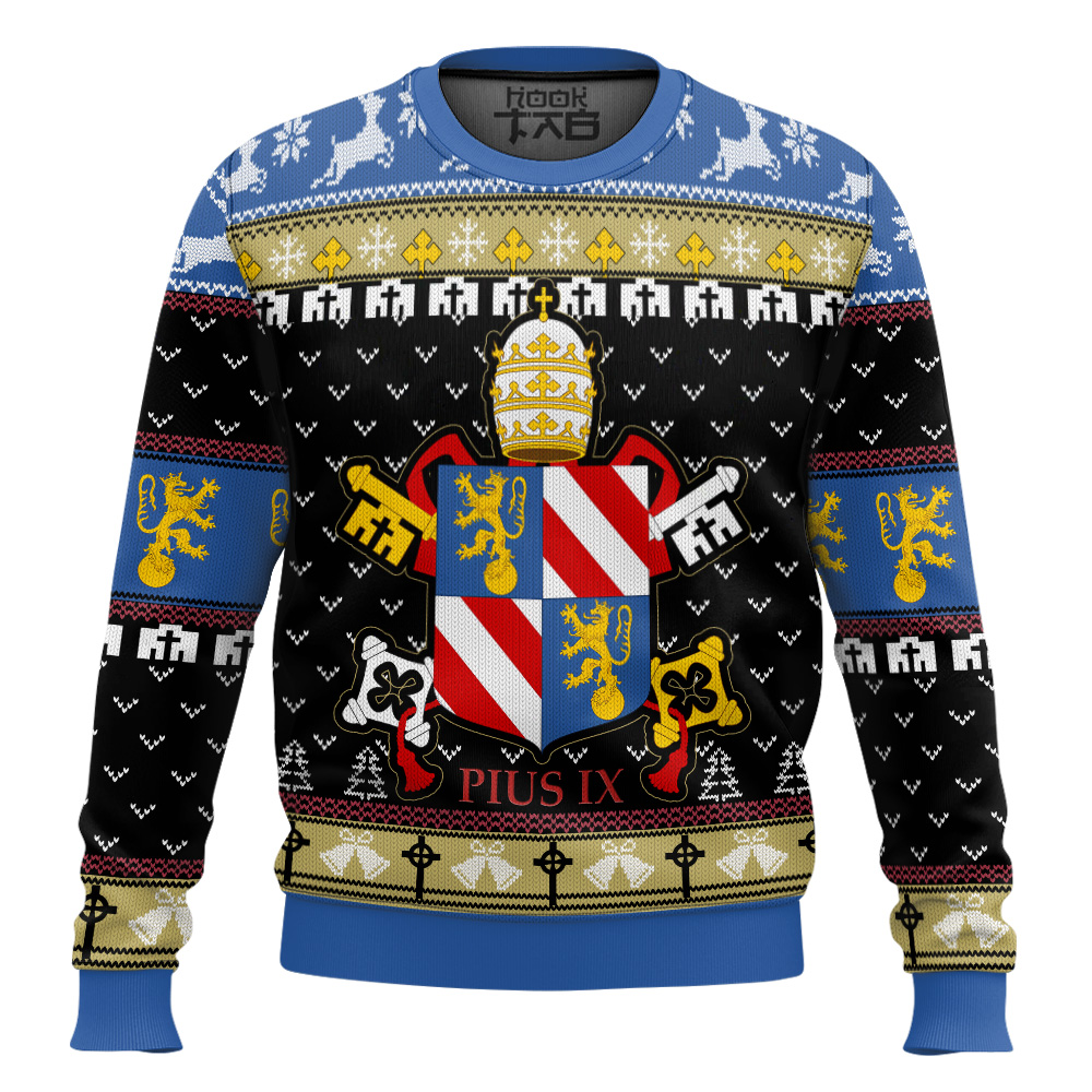 Hooktab Pope Pius IX Coat Of Arms Ugly Christmas Sweater