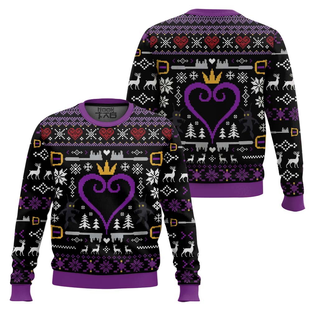 Hooktab Purple Hearts Kingdom Hearts Ugly Christmas Sweater