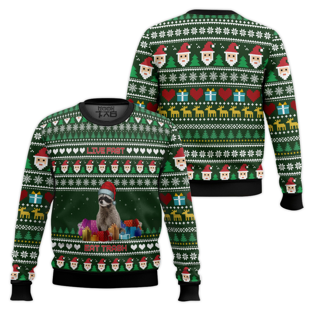 Hooktab Raccoon Live Fast, Eat Trash Ugly Christmas Sweater