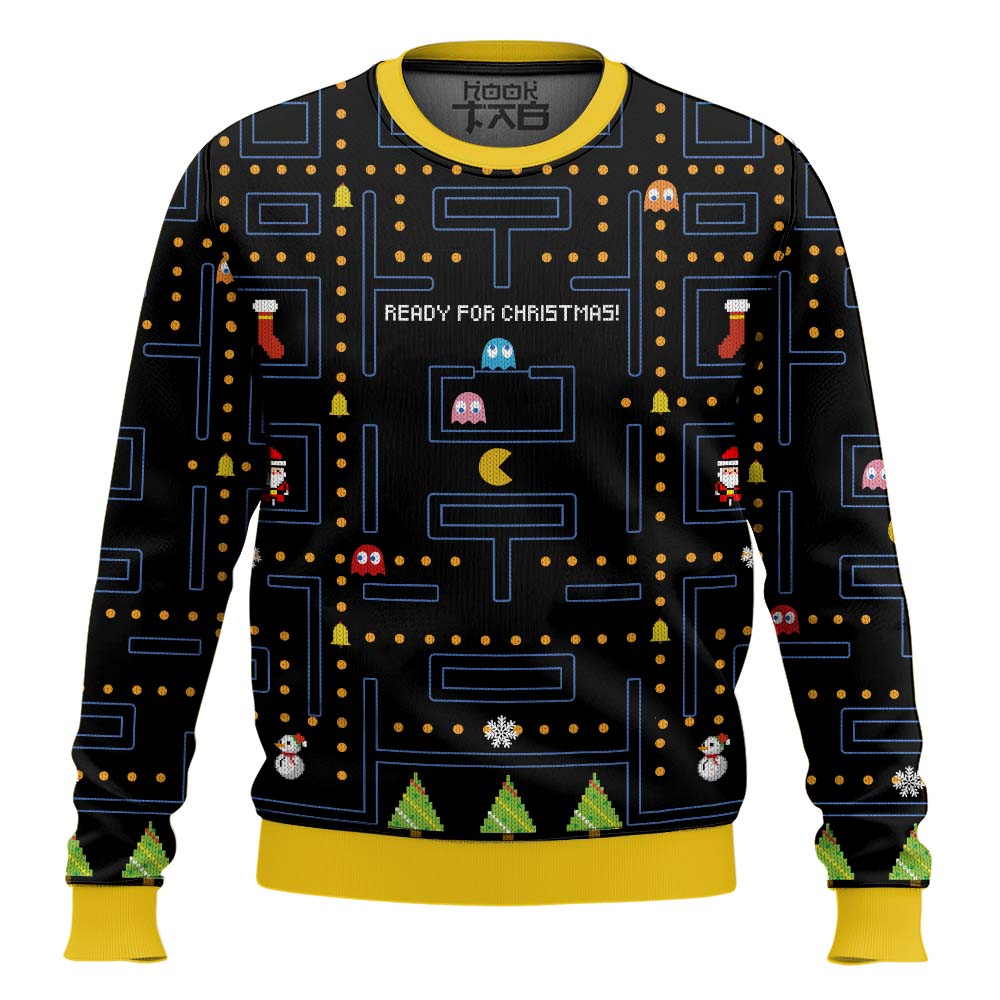 Hooktab Ready For Xmas Pac Man Ugly Christmas Sweater