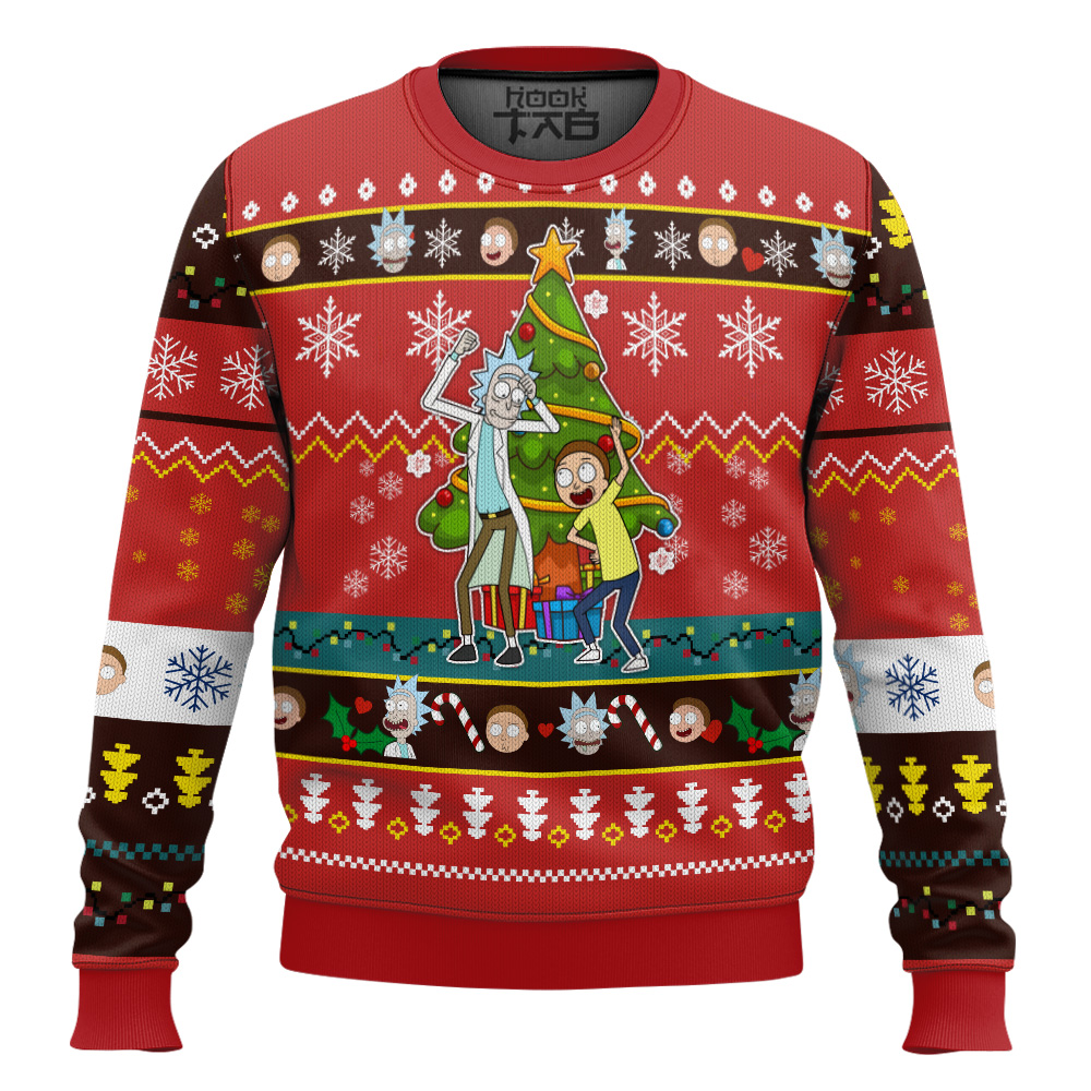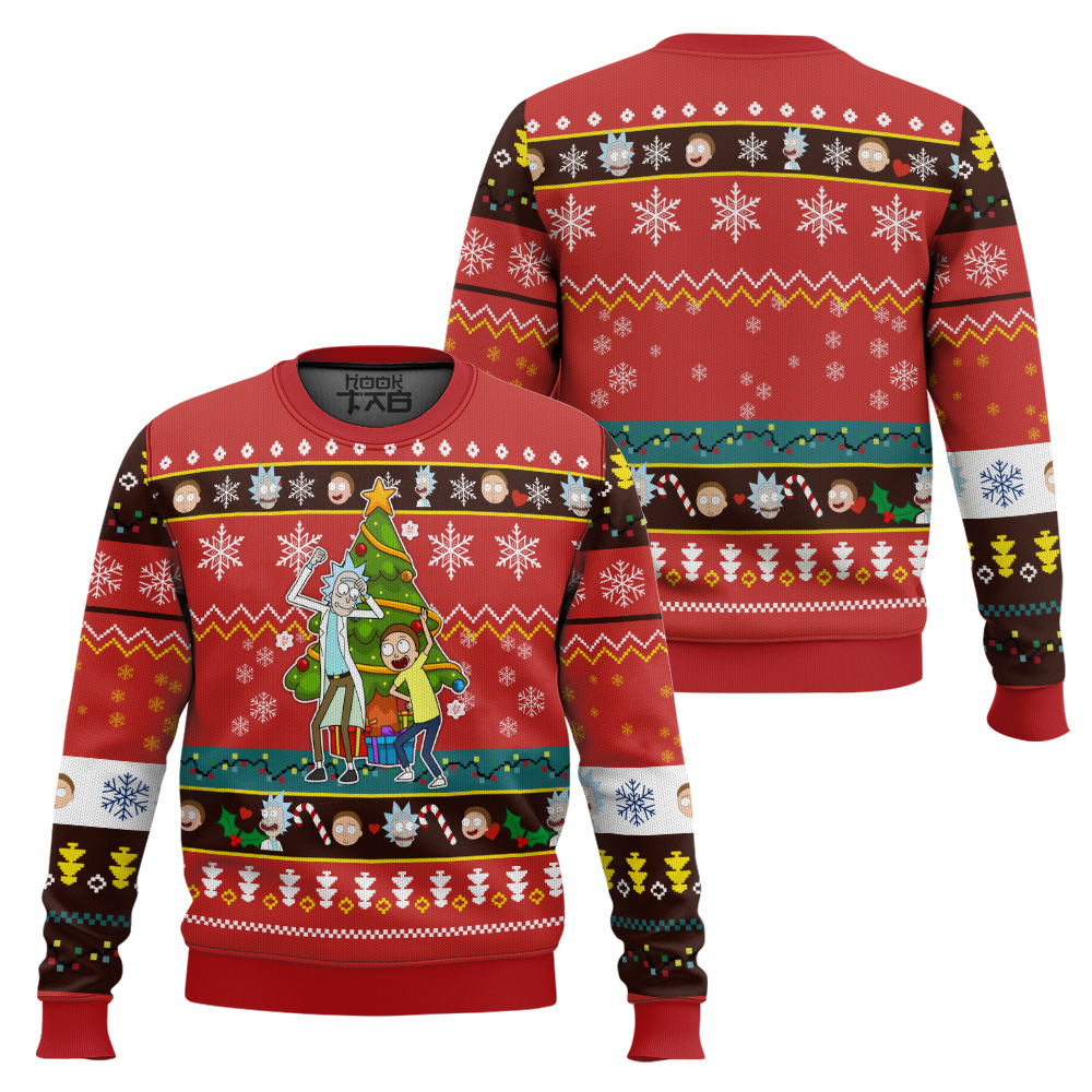 Hooktab Red Christmas Rick And Morty Ugly Christmas Sweater