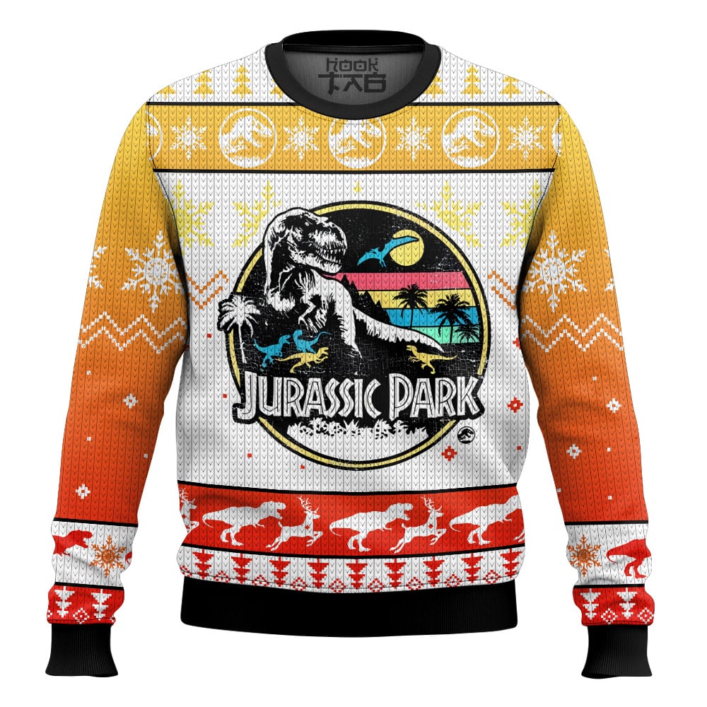 Hooktab Retro T-rex Jurassic Park Ugly Christmas Sweater