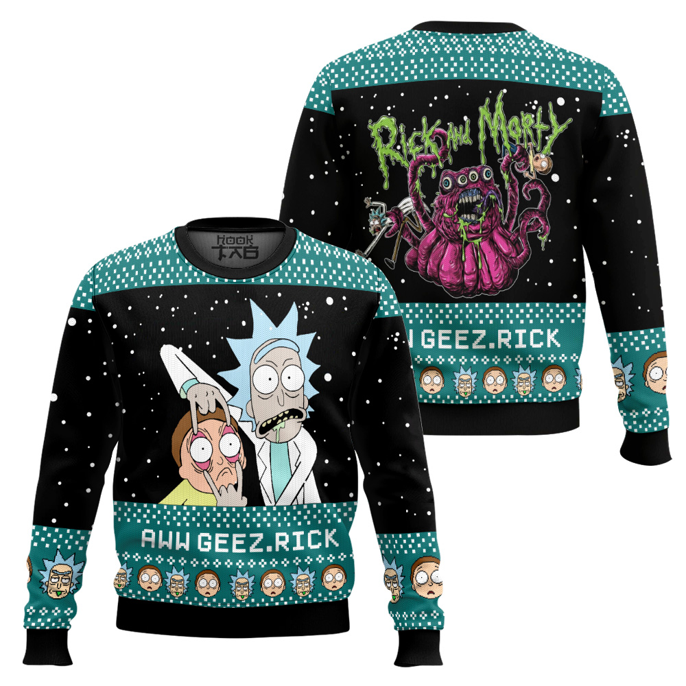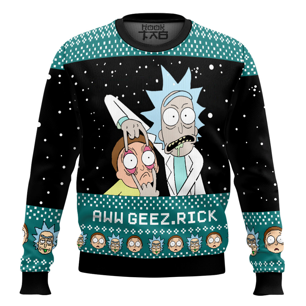 Hooktab Rick And Morty Aww Geez Rick Ugly Christmas Sweater