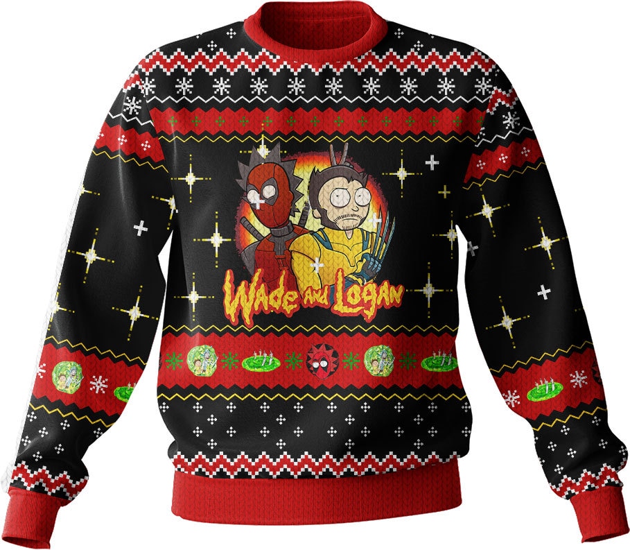 Hooktab Rick And Morty In Deadpool Multiverse Ugly Christmas Sweater