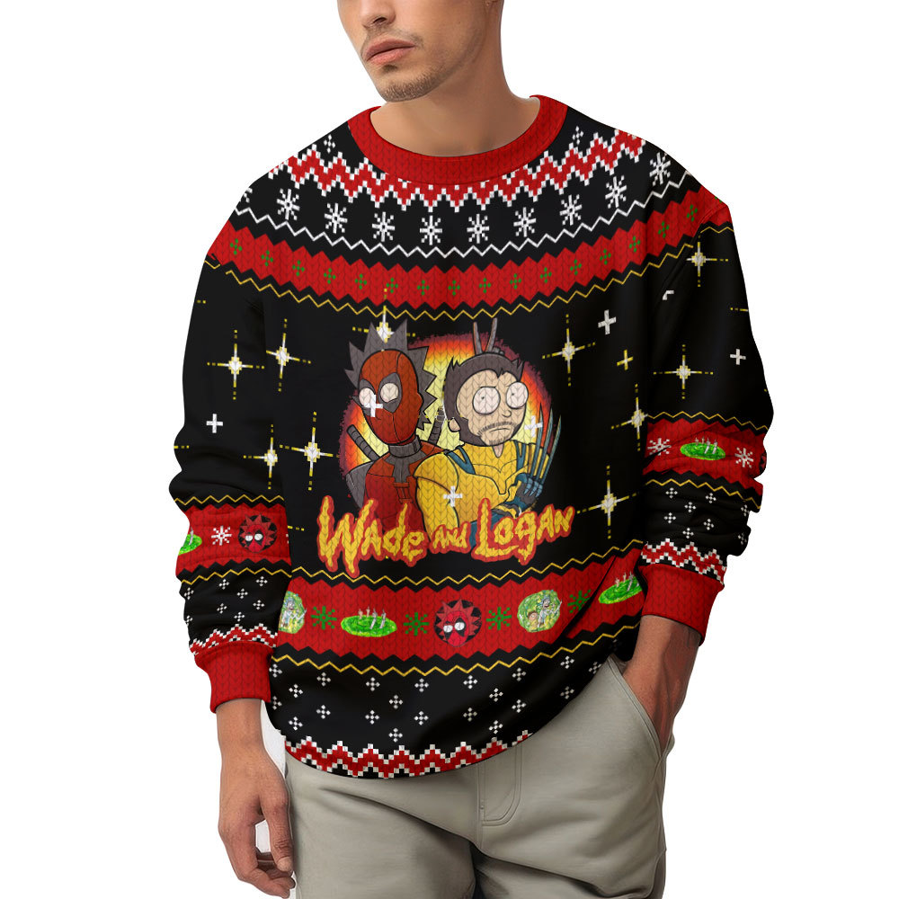 Rick and Morty in Deadpool Multiverse Ugly Sweater