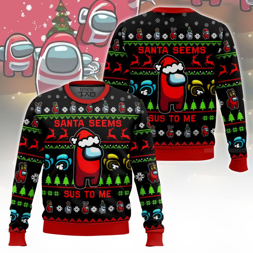 Hooktab Santa Seems Sus To Me Among Us Ugly Christmas Sweater
