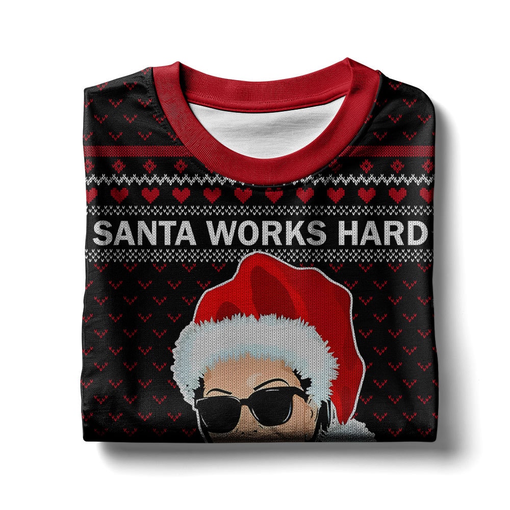 Hooktab Santa Works Hard But Kris Jenner Works Harder Ugly Christmas Sweater
