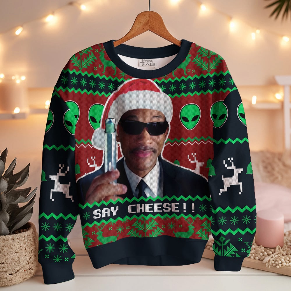 Hooktab Say Cheese! Men In Black Ugly Christmas Sweater