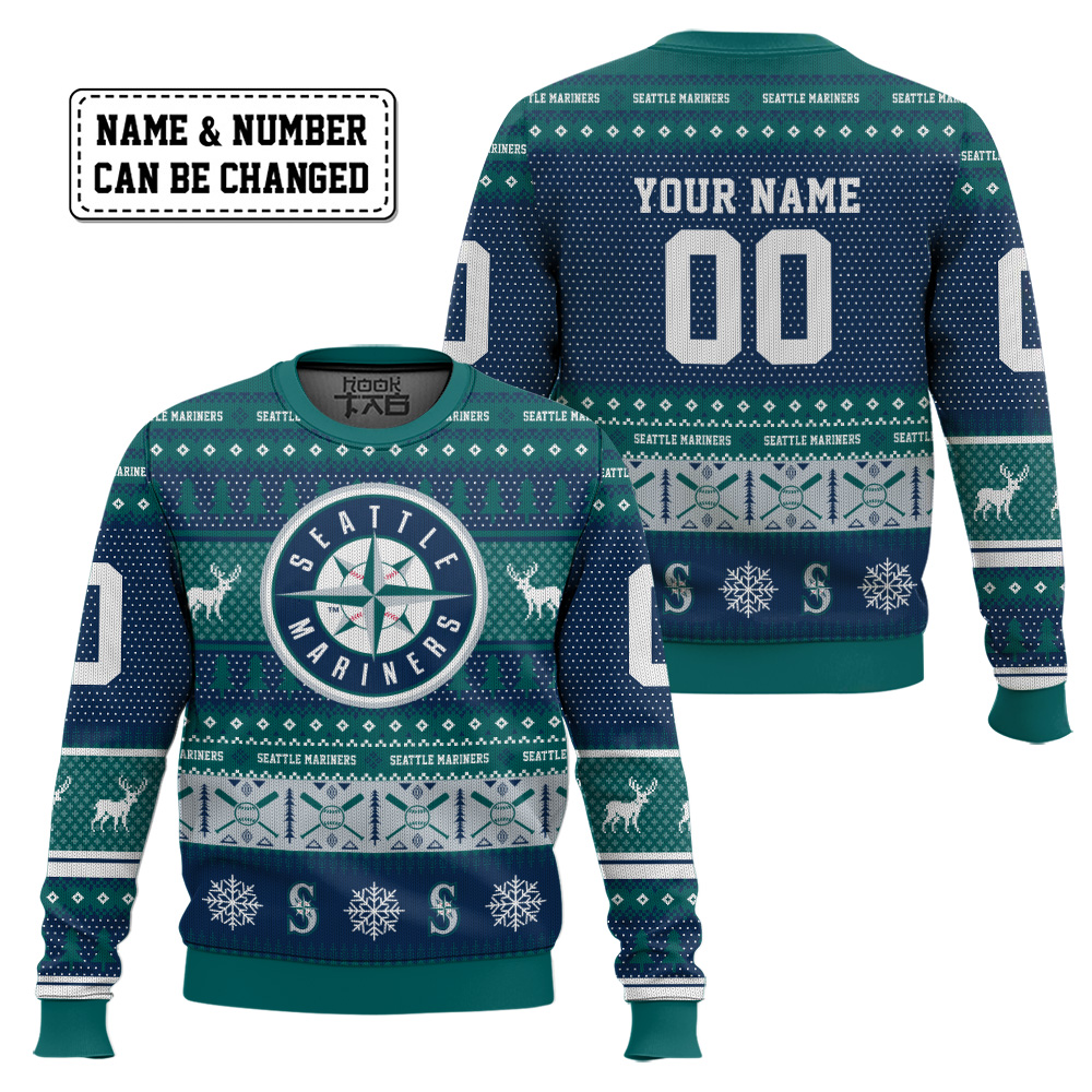 Hooktab Seattle Mariners – Custom Name And Number Ugly Sweater