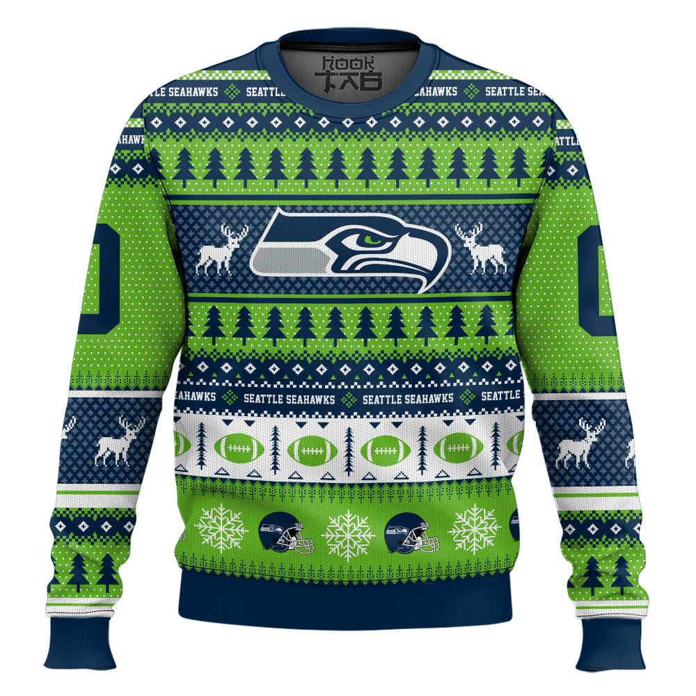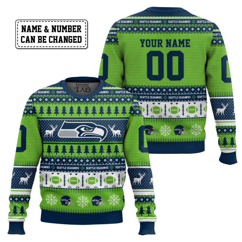 Hooktab Seattle Seahawks – Custom Name And Number Ugly Sweater