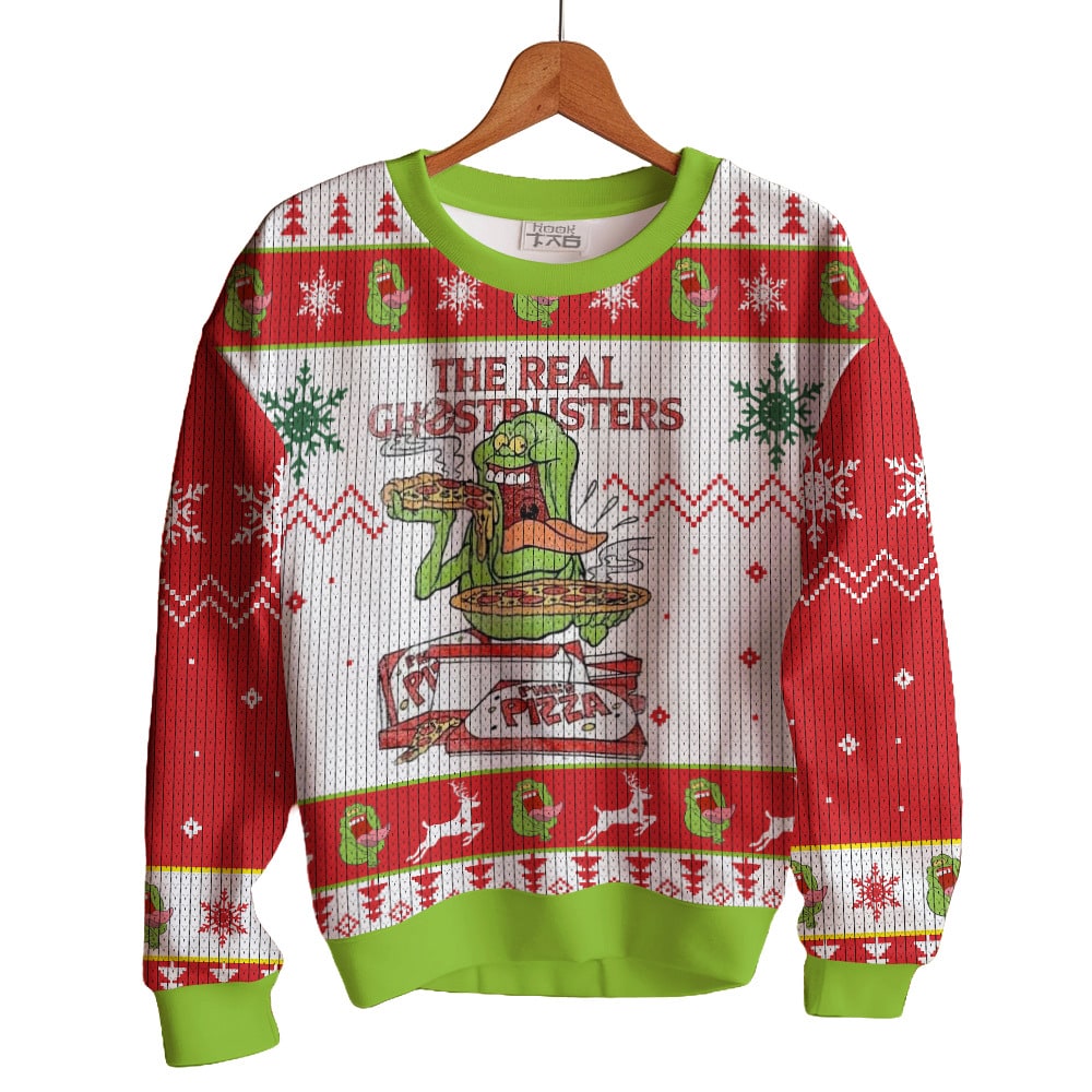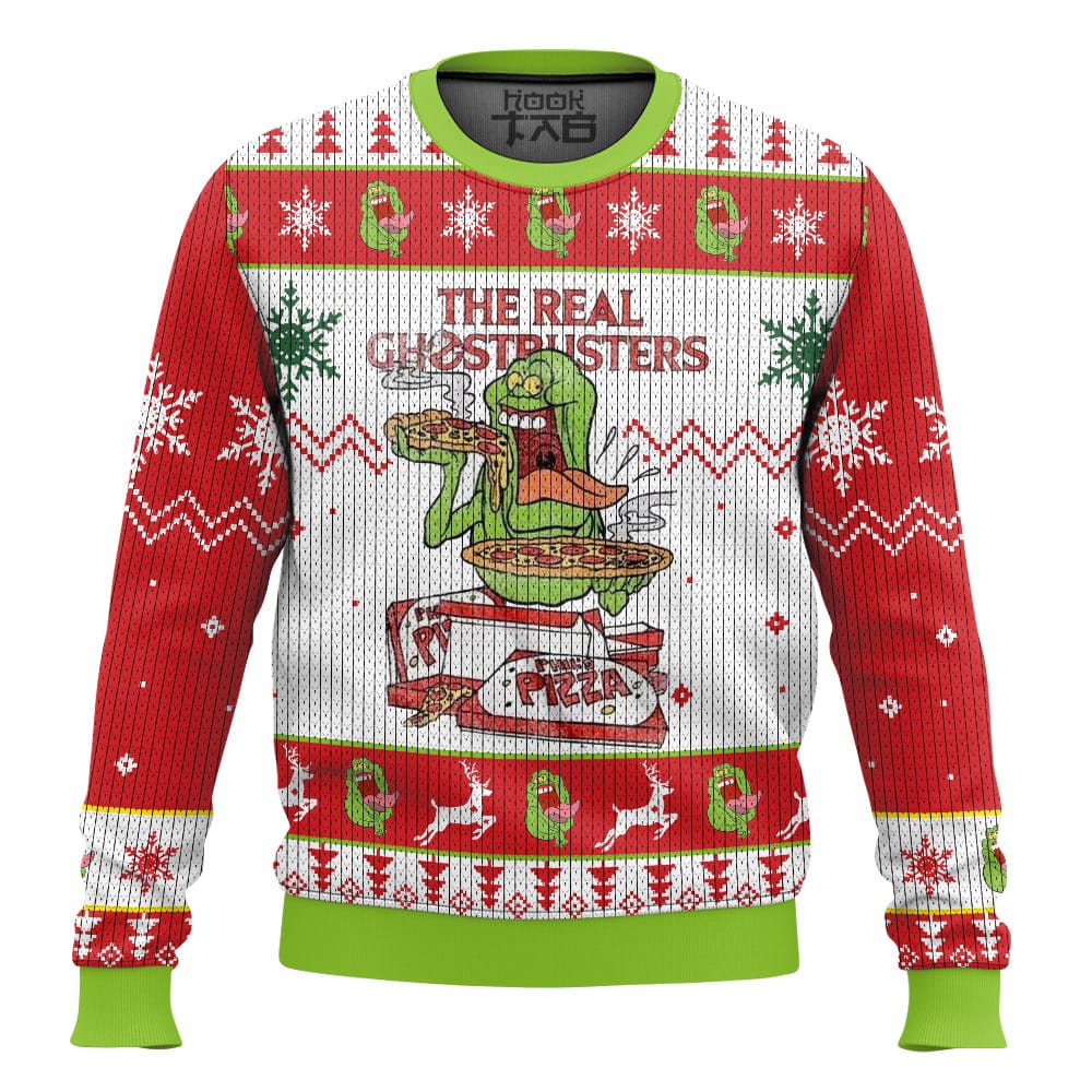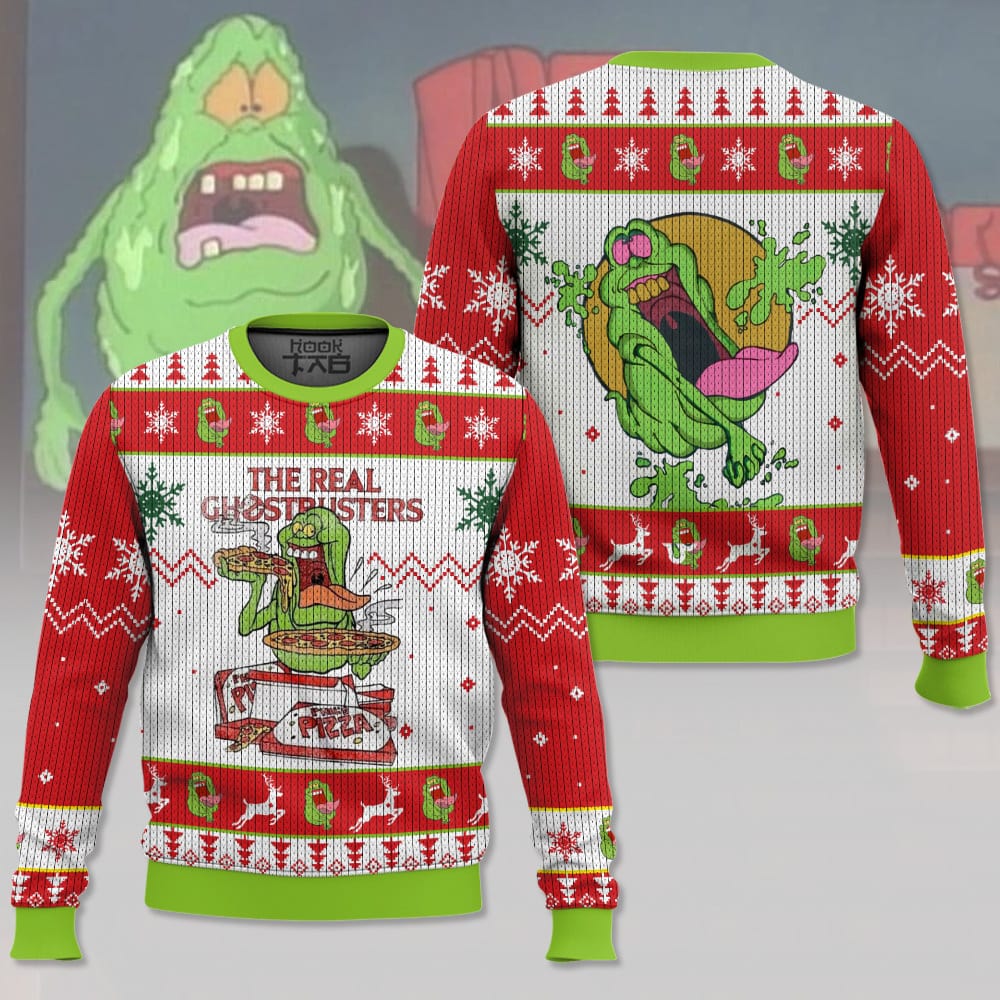 Hooktab Slimer The Real Ghostbusters Ugly Christmas Sweater