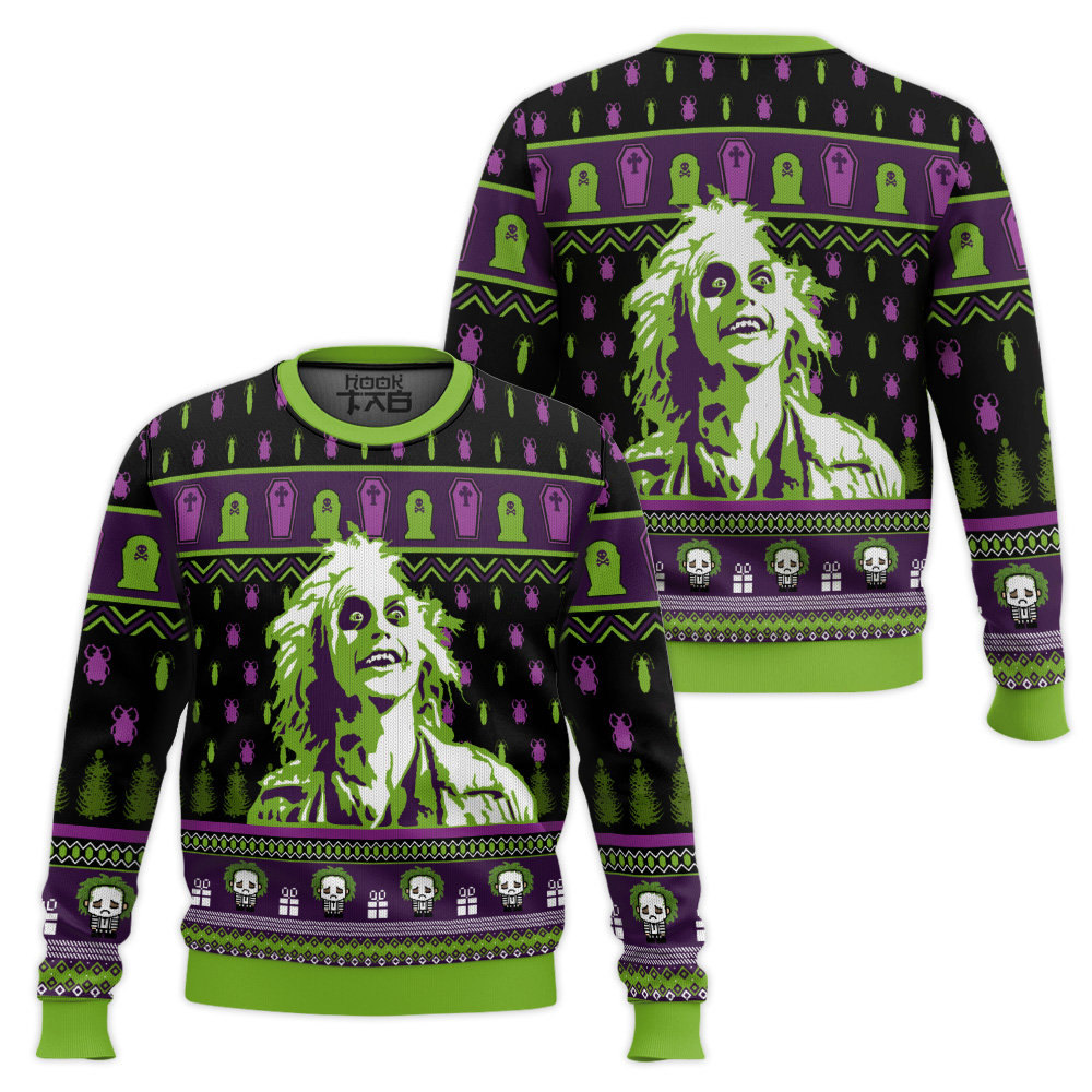 Hooktab Smiley Beetlejuice Ugly Christmas Sweater