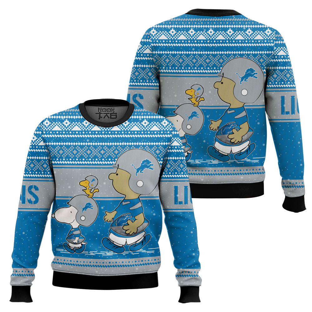 Hooktab Snoopy And Charlie Brown Detroit Lions Ugly Sweater
