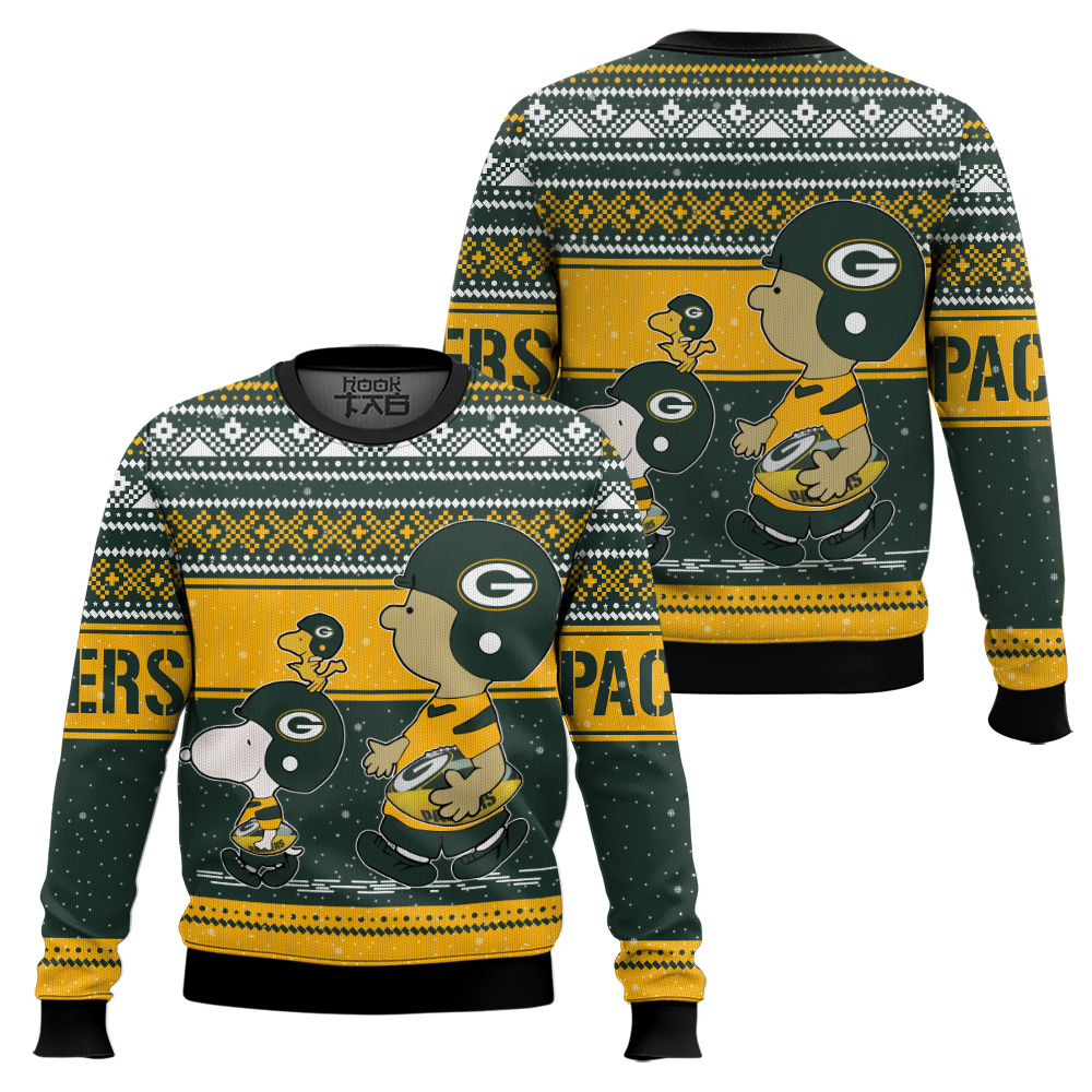 Hooktab Snoopy And Charlie Brown Green Bay Packers Ugly Sweater