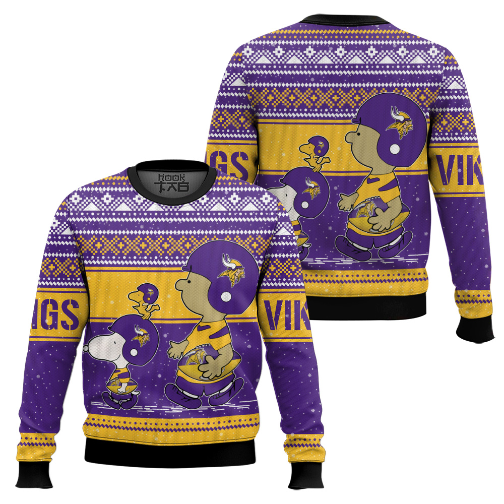 Hooktab Snoopy And Charlie Brown Minnesota Vikings Ugly Sweater