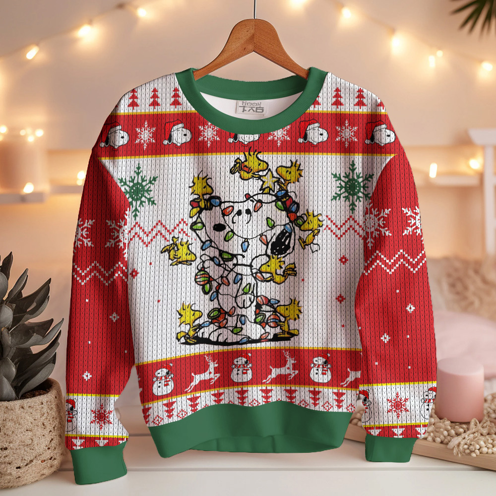 Hooktab Snoopy Pine Tree Tree The Charlie Brown and Snoopy Show Ugly Christmas Sweater