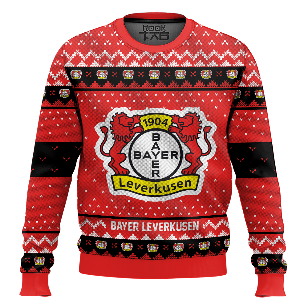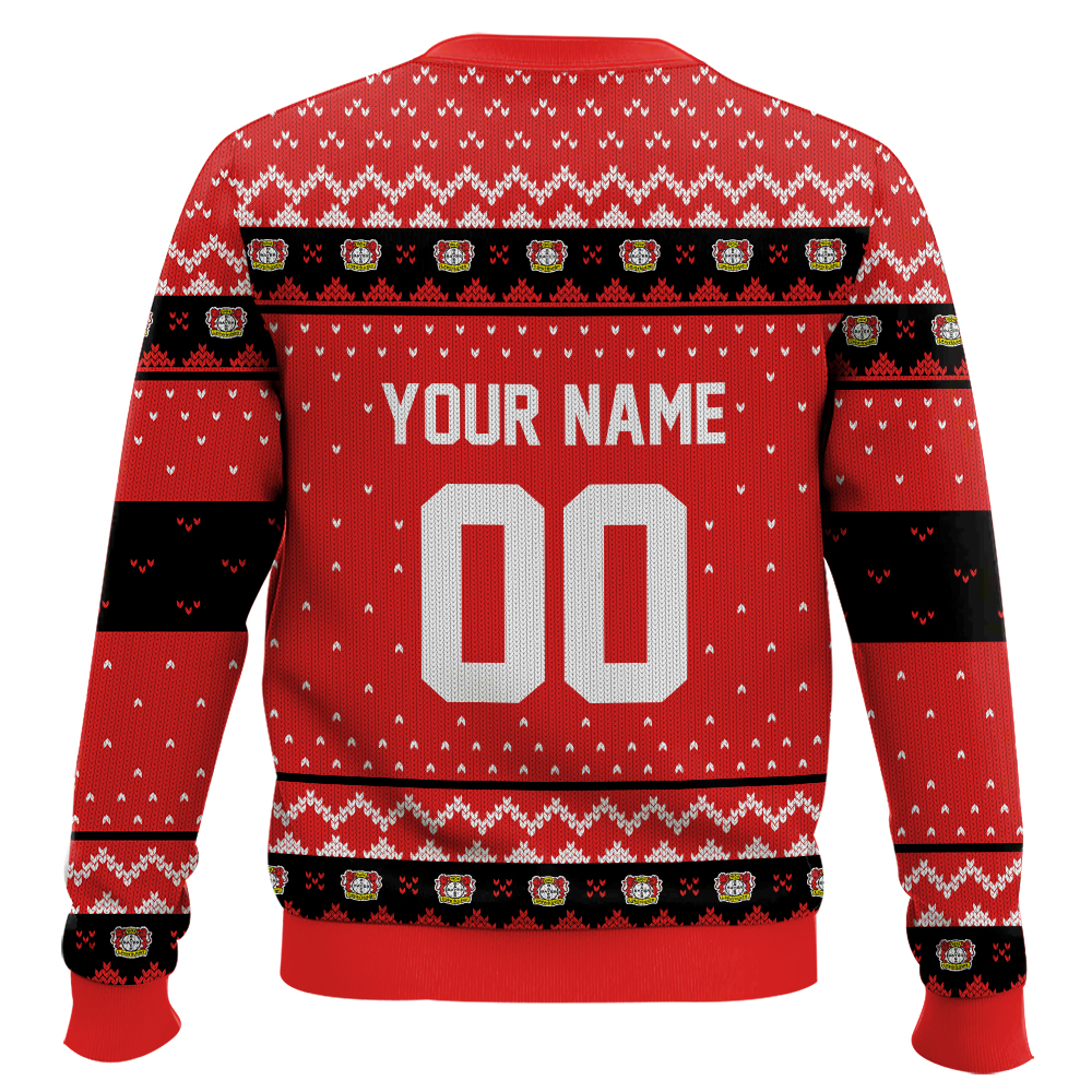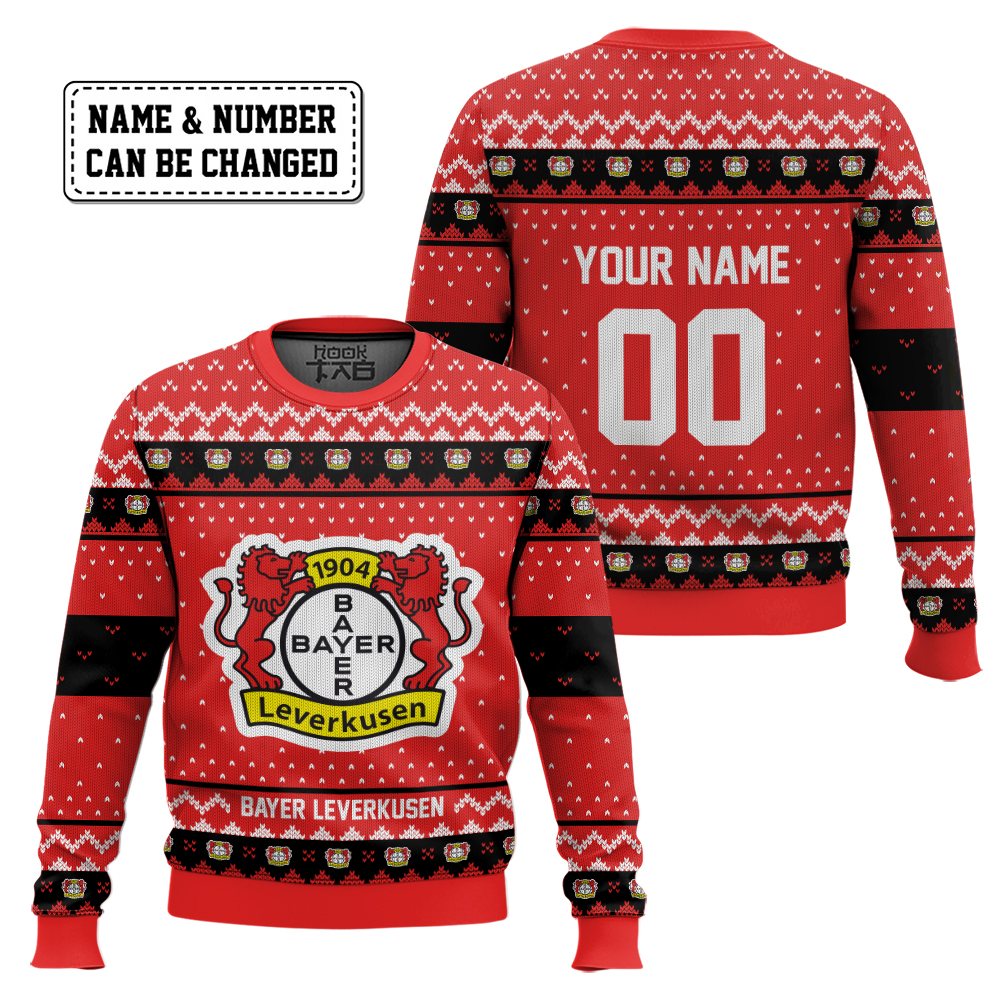Hooktab Soccer Bayer Leverkusen Custom Name And Number Ugly Christmas Sweater