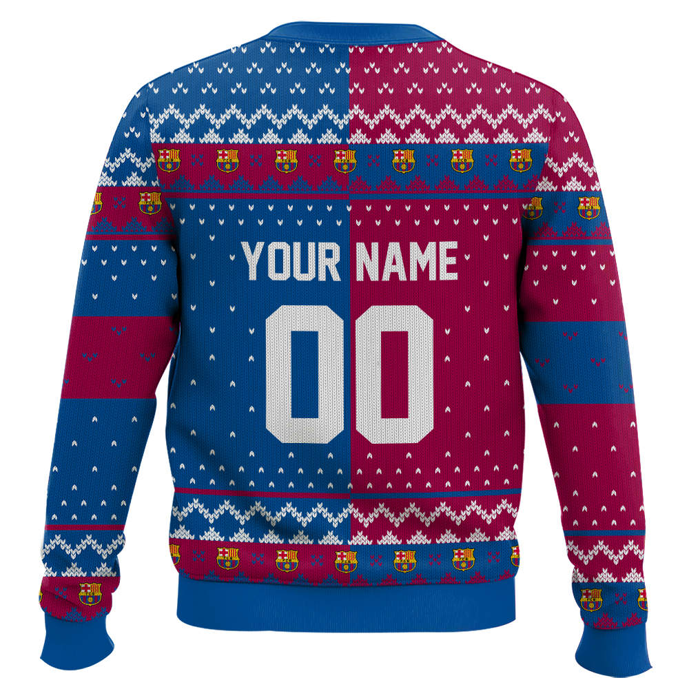 Hooktab Soccer FC Barcelona Custom Name And Number Ugly Christmas Sweater