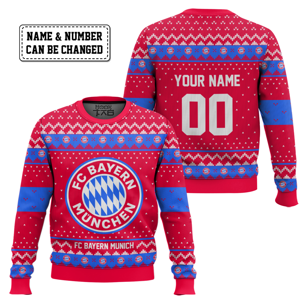 Hooktab Soccer FC Bayern Munich Custom Name And Number Ugly Christmas Sweater