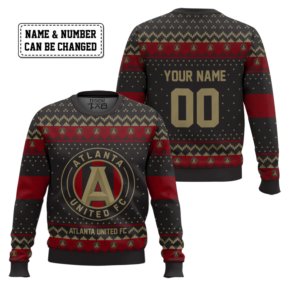 Hooktab Soccer MLS Atlanta United FC Custom Name And Number Ugly Christmas Sweater