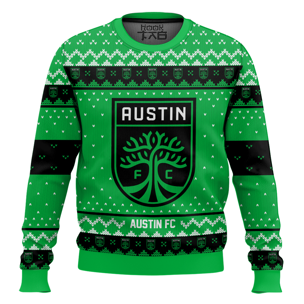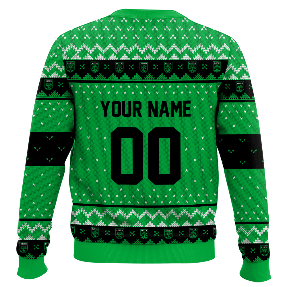 Hooktab Soccer MLS Austin FC Custom Name And Number Ugly Christmas Sweater