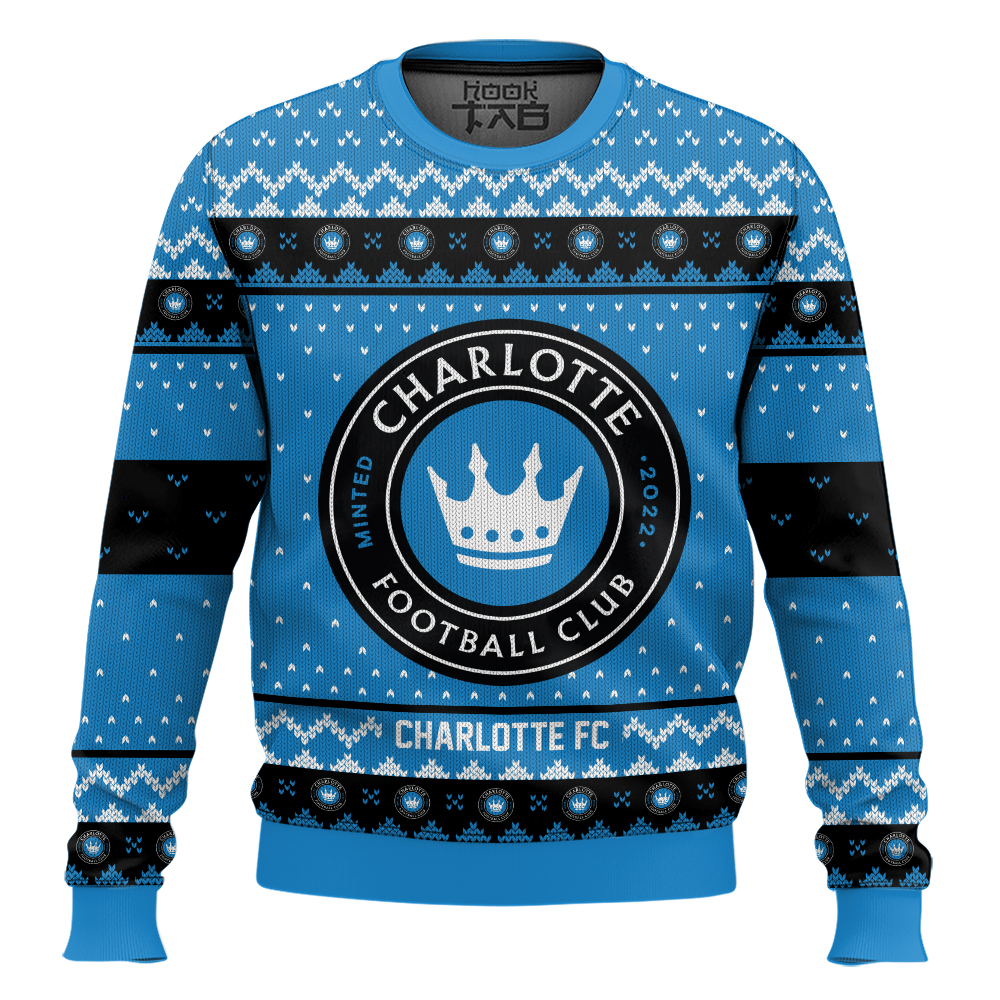 Hooktab Soccer MLS Charlotte FC Custom Name And Number Ugly Christmas Sweater