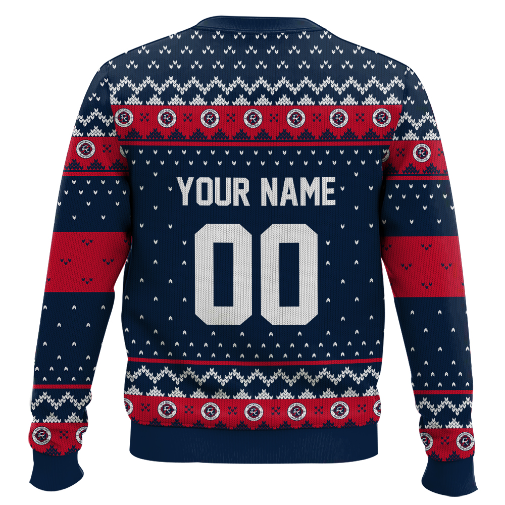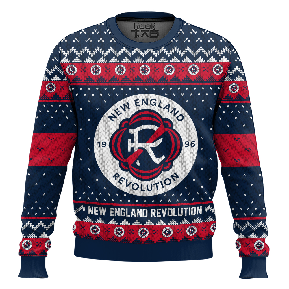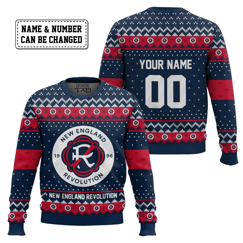 Hooktab Soccer MLS New England Revolution Custom Name And Number Ugly Christmas Sweater