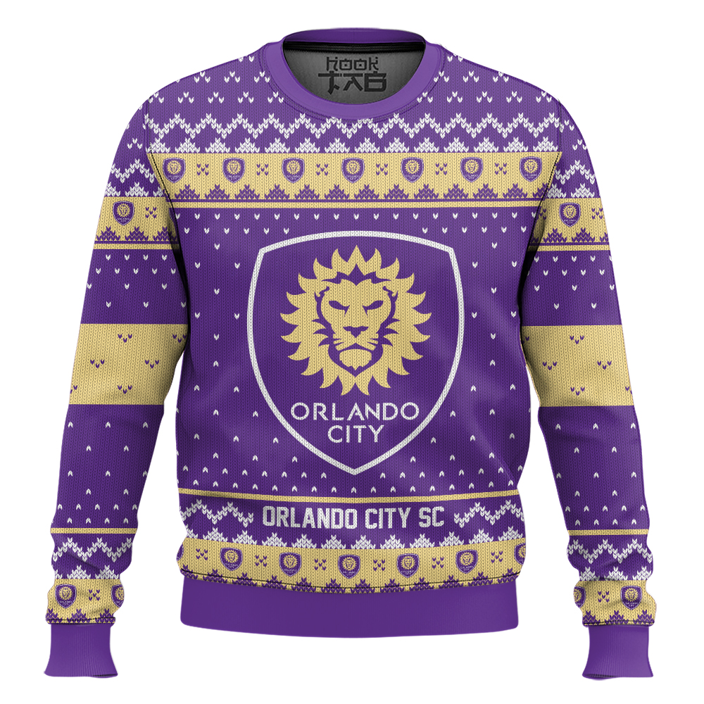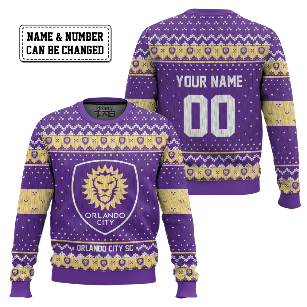 Hooktab Soccer MLS Orlando City SC Custom Name And Number Ugly Christmas Sweater