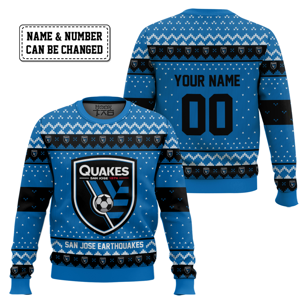 Hooktab Soccer MLS San Jose Earthquakes Custom Name And Number Ugly Christmas Sweater