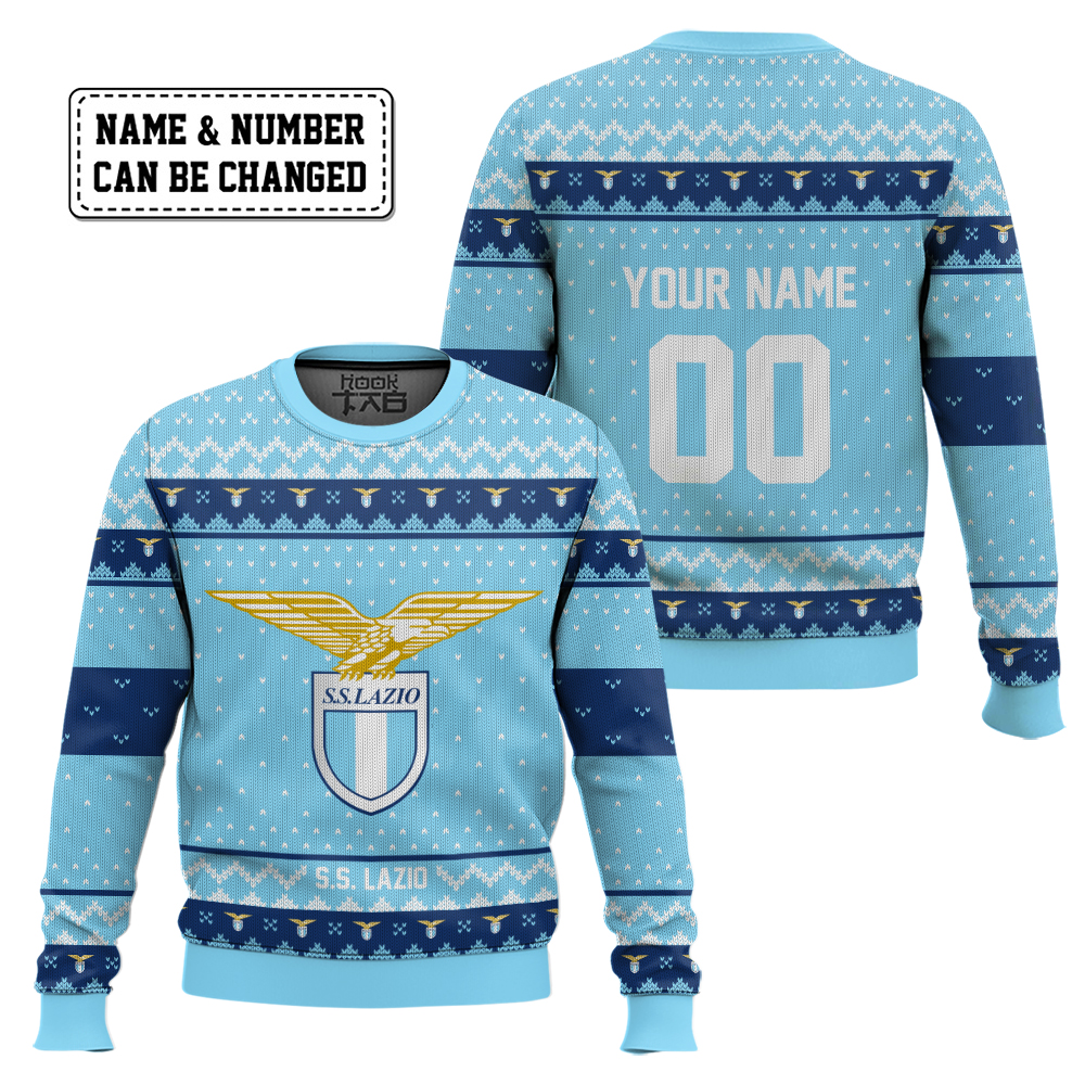 Hooktab Soccer S.S. Lazio Custom Name And Number Ugly Christmas Sweater
