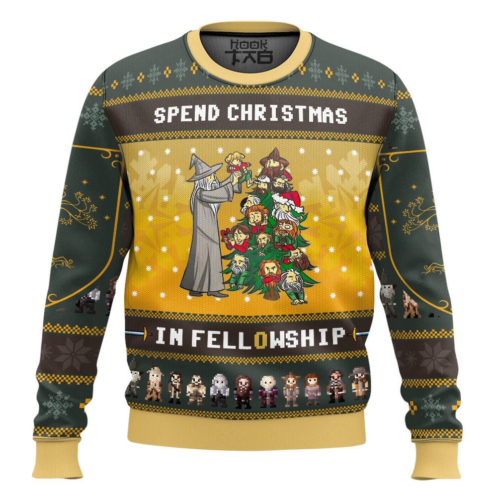 Hooktab Spend Christmas In Fellowship The Lord Of The Rings Ugly Christmas Sweater