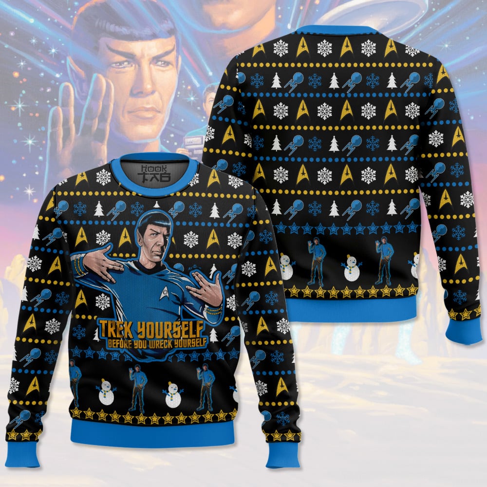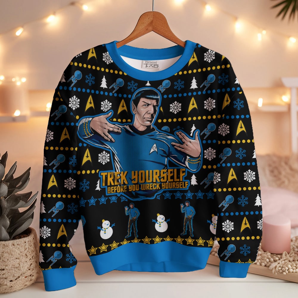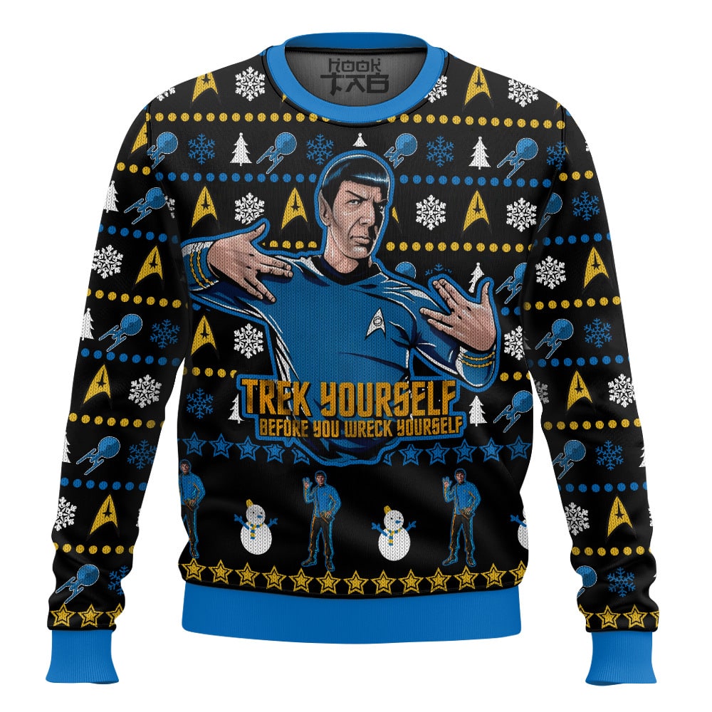 Hooktab Spock Trek Yourself Before You Wreck Yourself Sar Trek Ugly Christmas Sweater