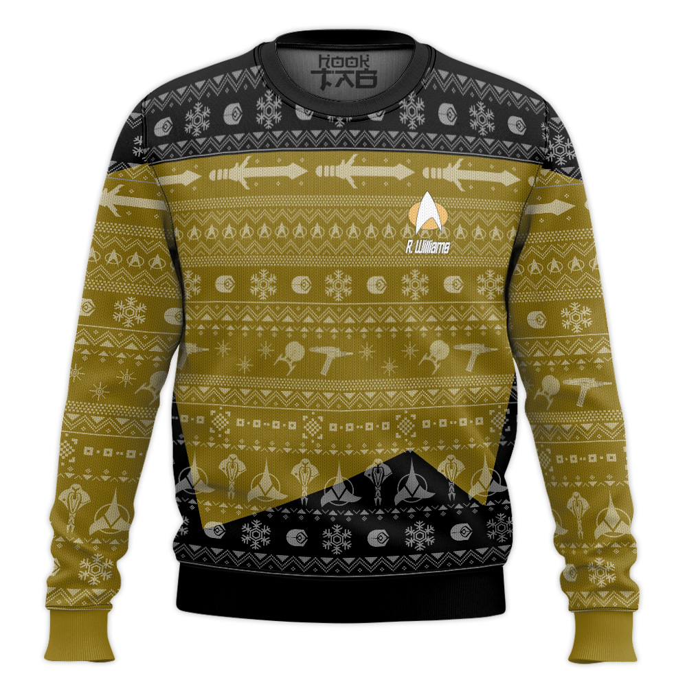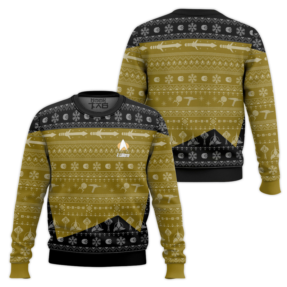 Hooktab Star Trek 1987 Yellow – Custom Name Ugly Christmas Sweater