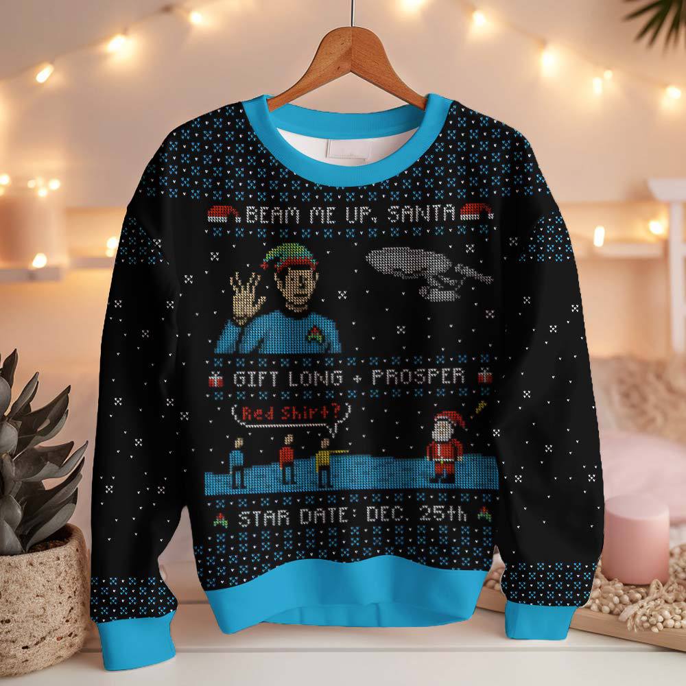 Hooktab Star Trek Beam Up Santa Ugly Christmas Sweater